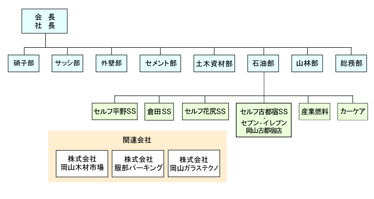 | 事業内容 | 建築・土木資材の販売・施工および石油製品の販売、コンビニエンスストア運営、カーリース事業、山林業、不動産運営 |